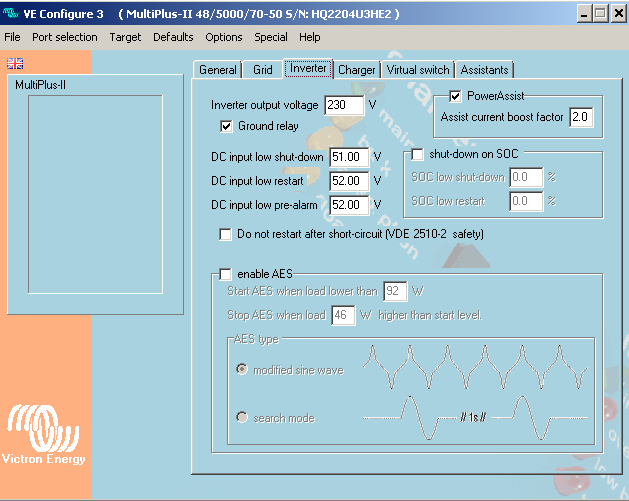 JJ, musíš vrátit měnič softem cos programoval na ty 2 fáze do ostrovního řežimu a pak nastavit přes VE-Configue3.Dandis píše:Všem děkuji za postřehy, myslím si, že další můj problém je, že mám systém 2 fázový a VEConfig3 mi nepovoluje vůbec se k měničům připojit. To mi funguje pouze ve VictronConnect. Tak já nevím, mám v tom už trochu zmatek