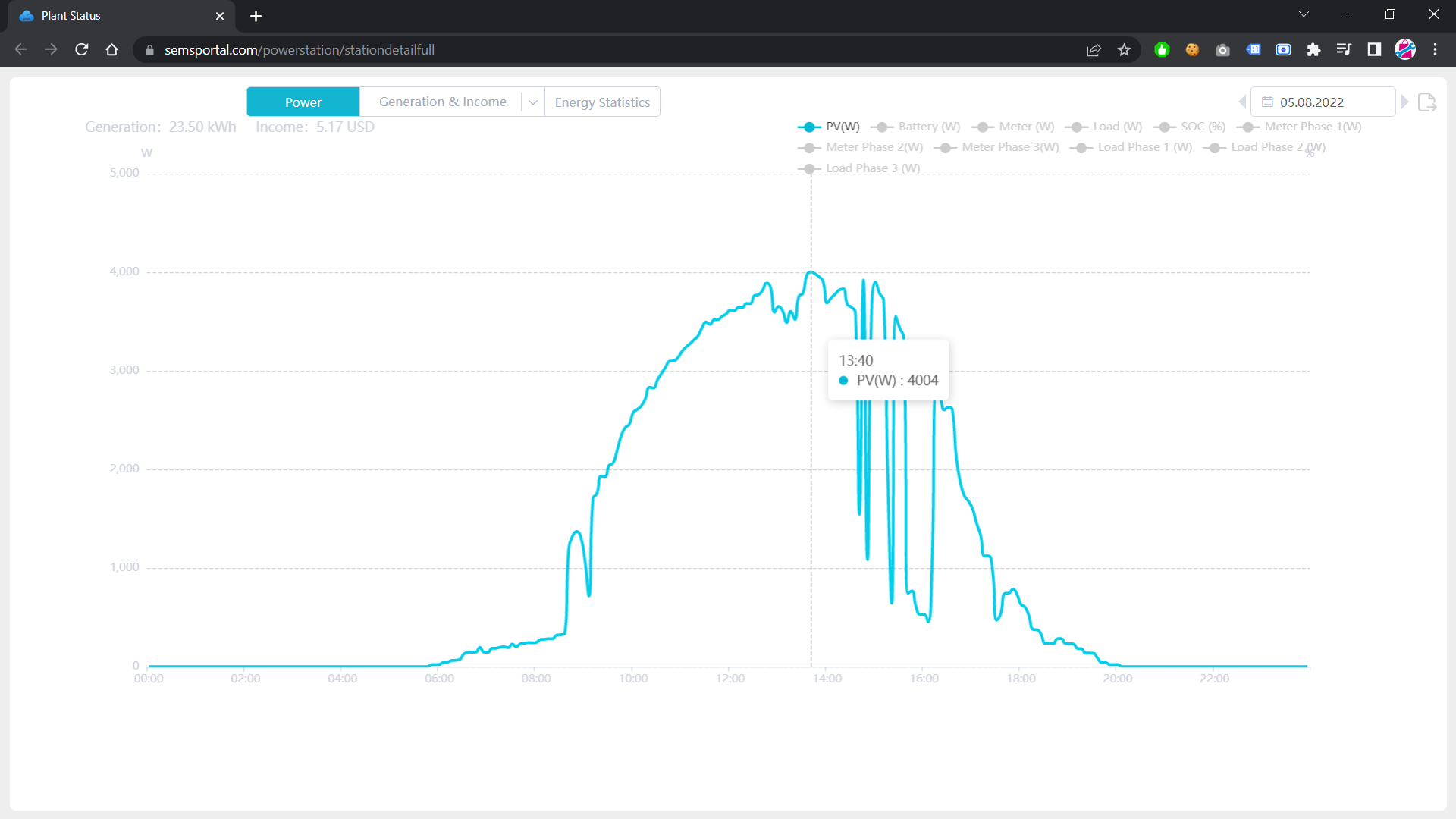Zajímá mě hodnota PV(W), abych viděl graf ráno/večer. (nemyslím přímo číslo PV, ale ať vidím křivku kdy "začíná" a kdy "končí")