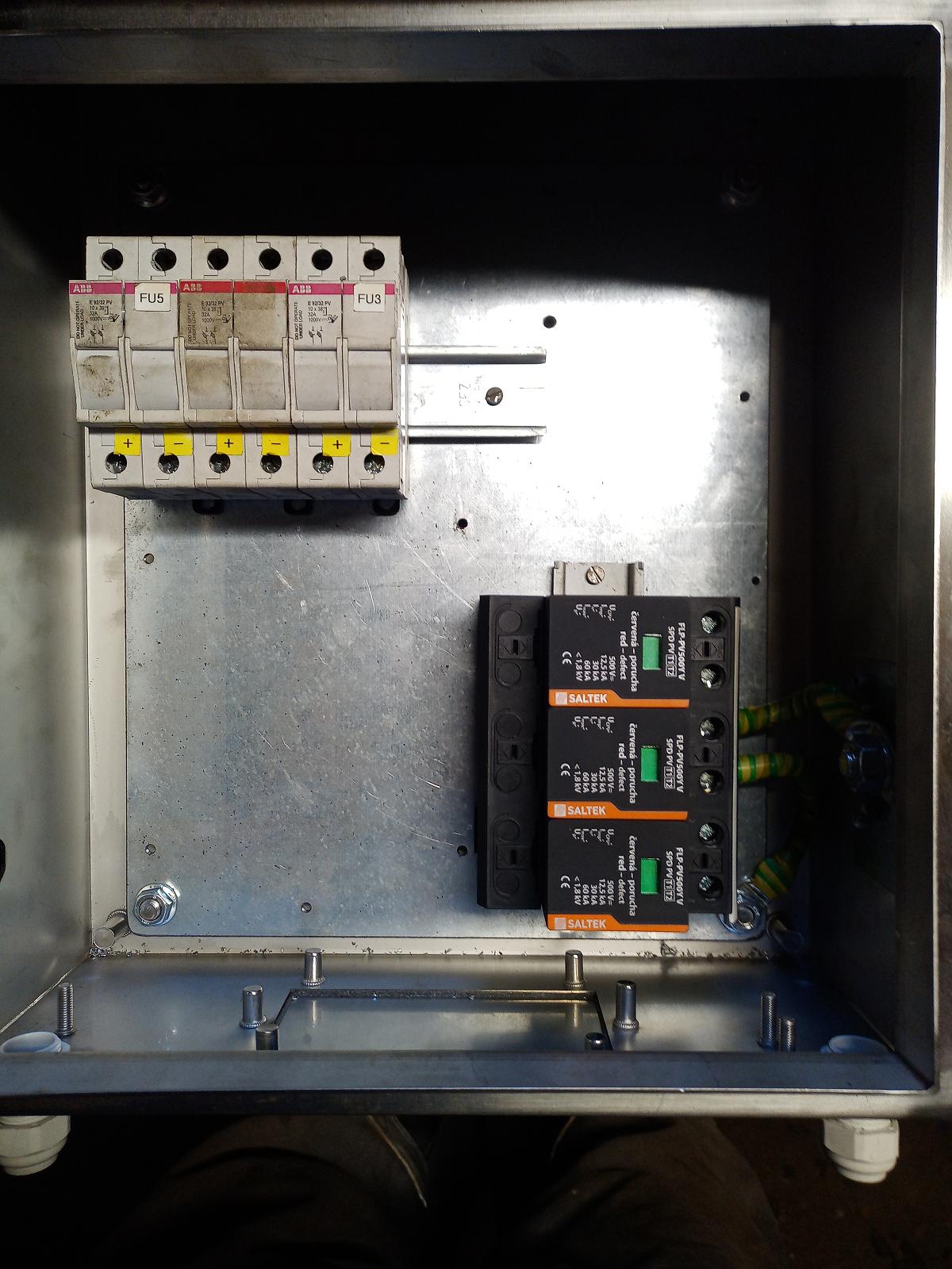 je také plechový rozvaděč propojen s zemnícím páskem který je stejný jako u první přepěťovky.