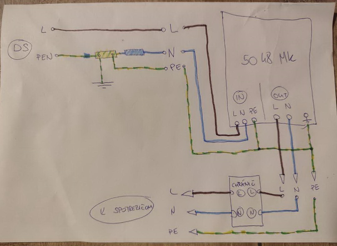 Na obrázku je TN-C-S. Což tedy je klasika, na rozdíl od zastaralé TN-C.
