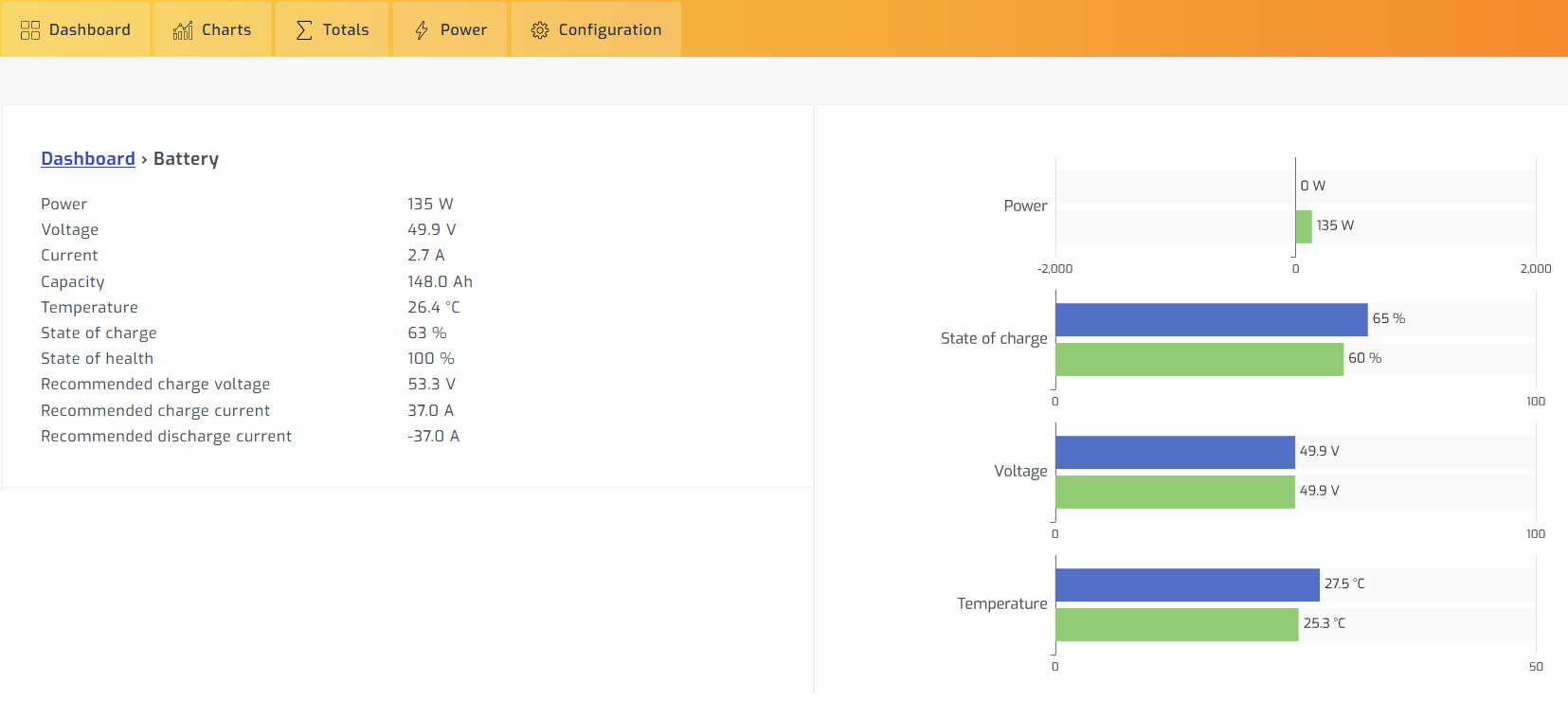 Dvě z nových baterií se chovají spořádaně (tedy 4 jsou OK a chovají se jednotně), ale první baterie (shodou kolností master) svítí alarmem. Vyčetl jsem z ní nějaké parametry, ale nedává mi to moc smysl - umím se připojit jen RS485 a ten protokol není moc super popsaný.