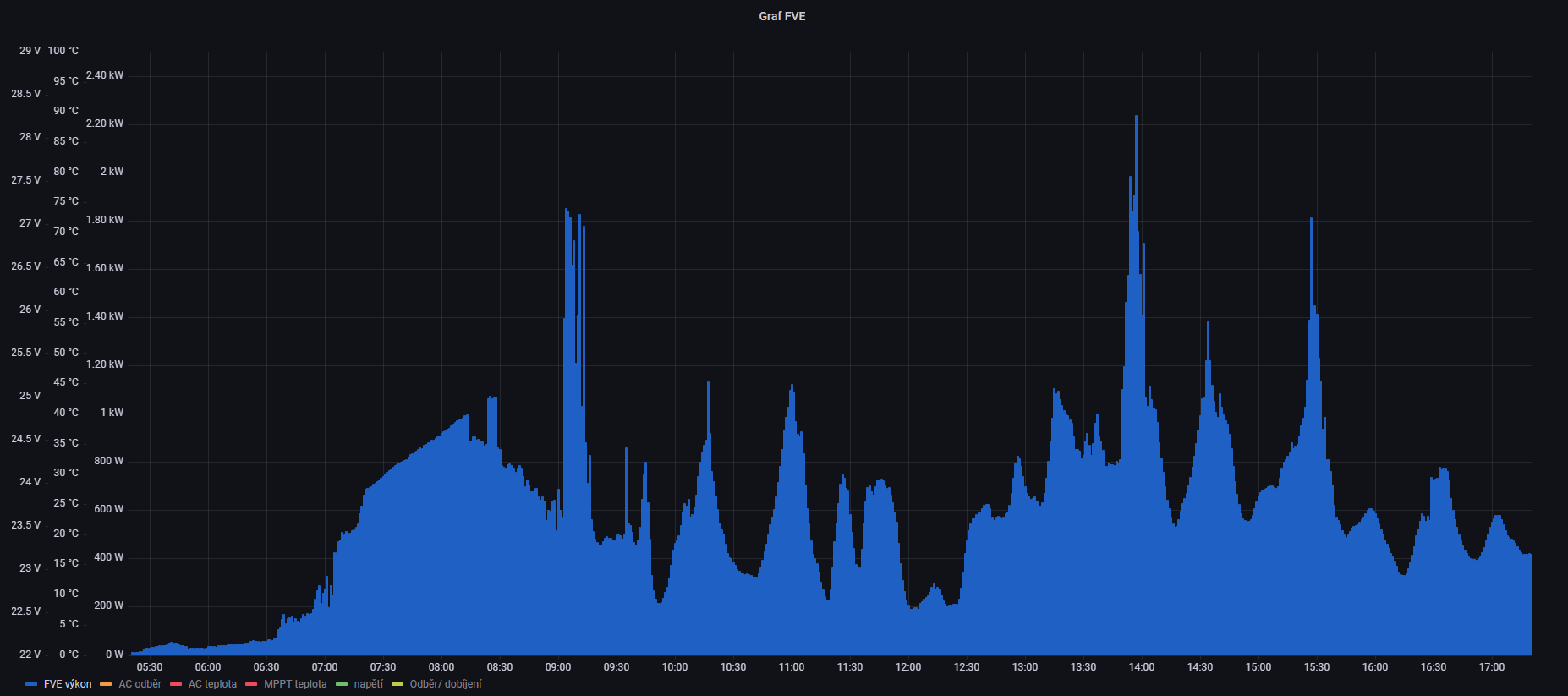 Ja mam aktualne dve 1kW spiraly paralelne (muj bojler plus bojler ve vedlejsim byte), jakmile se nahreji, tak se to prepne do zebriku. Zatim teda pres relatko podle napeti baterie, byt to teda pekne cvaka, kdyz se prezene mrak. V planu je tam ten fazove rizeny vytezovac, at to plynule mebi vykon.