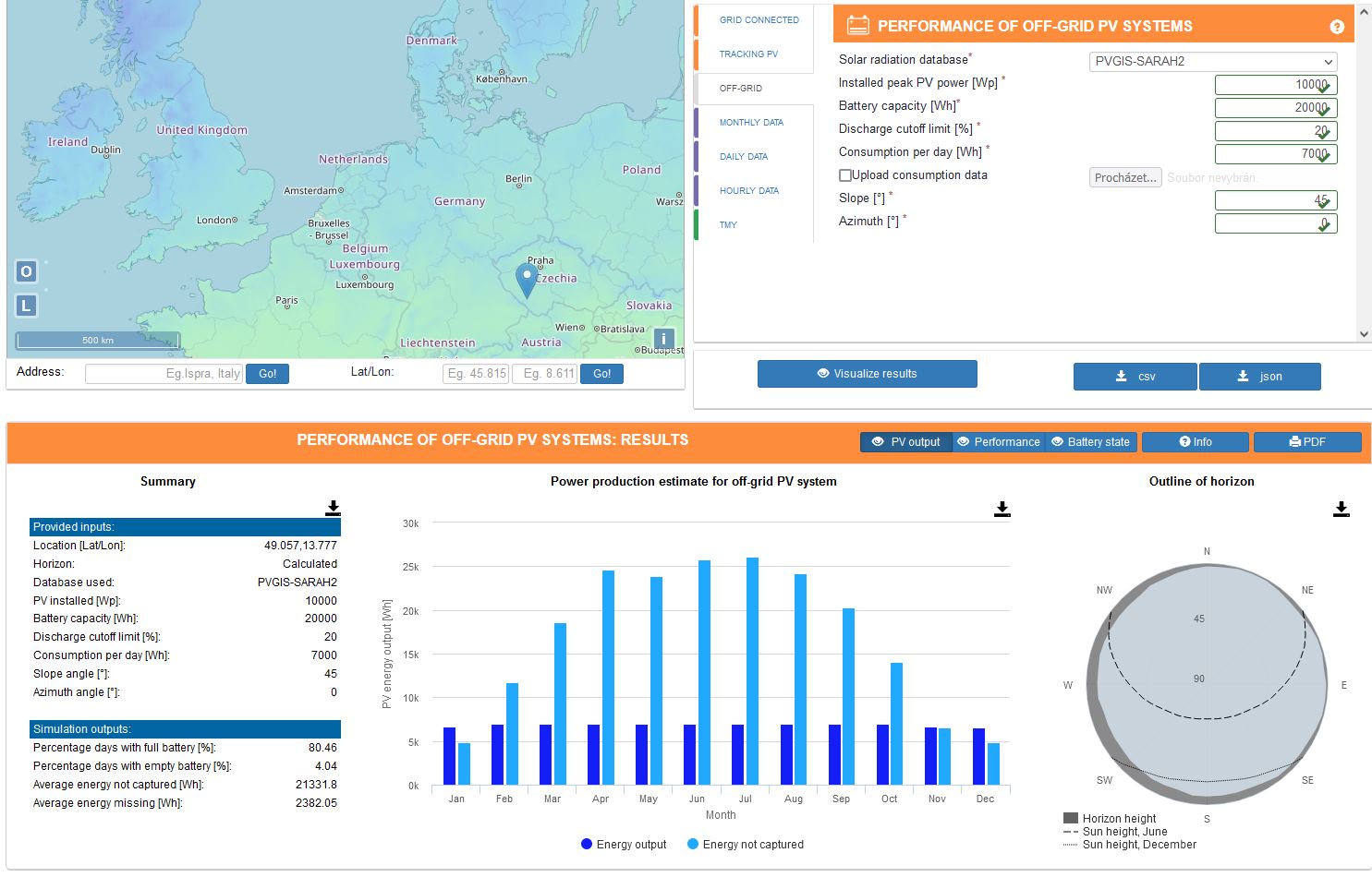 Simulace ostrovu v PVGIS
