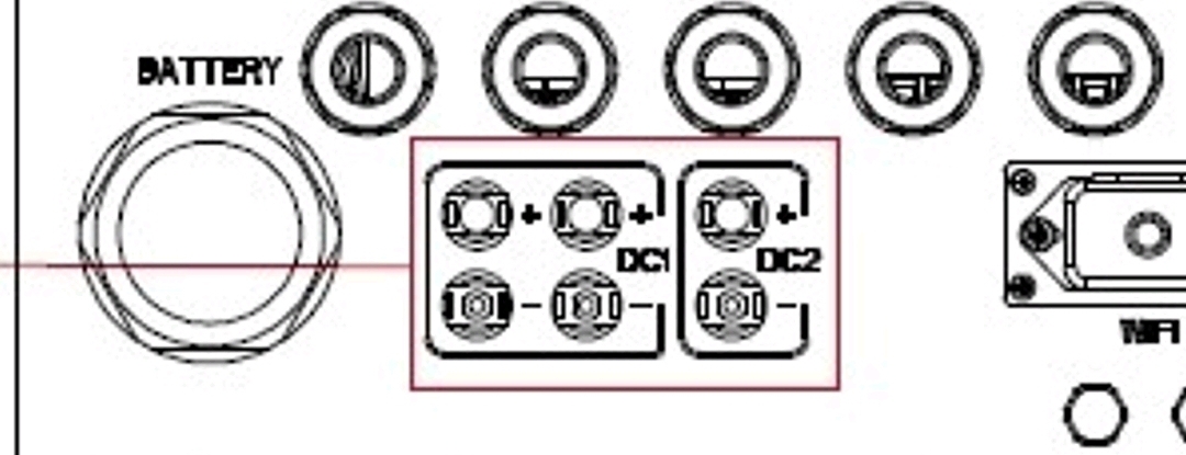 Dle výrobce střídače Deye já mám zapojit 10 a 10 do série dva stringy a zapojit do DC1 a DC2. To je na string 542V.