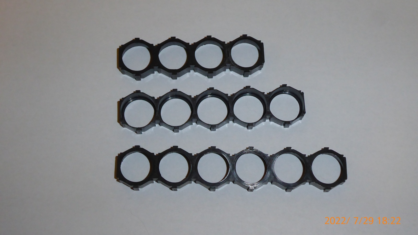 K zakoupeným článkům přidám zdarma patřičnou kapacitu držáků (spacerů) , lze si vybrat ze dvou variant - obdélník 4x5 článků či hexagonální systém , délky 4 , 5 či 6 pozic . Příklad sestavení plástve . Preferuji osobní předání v Brně a okolí . Poštou radši ne - nemám origo transportní krabičky
