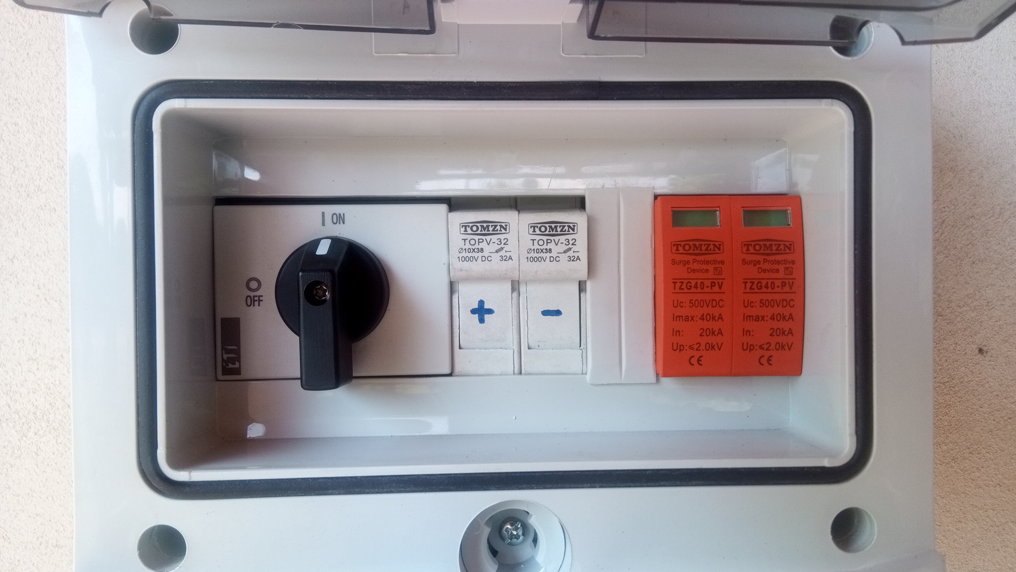 Dlouho jsem řešil (tak jako každý) uzemnění konstrukce a přepěťovek. Problém je, že moje hi-tech rozvodná deska z 50 let v domě tak nějak neumožňuje připojit cokoli dalšího a zemnící přívod je z druhé strany domu. Jedná se o dvoudomek, na mém hromosvod není, na druhém sice je, ale nedělám si iluze v jakém je stavu. Několik konzultací z různými elektrikáři i revizáky mi nedalo jasnou odpověď. Někdo tvrdil natáhnout uzemňovací kabely přes vnitřek domu ( nejlepší cesta pro kabeláž) na druhou stranu k uzemňovacímu bodu a tam to spojit. Jiný tvrdil, že si přece nějaké přepětí nebudu tahat schválně do baráku a na uzemnění DS ( síť TN-C ) když už to mám nezávisle na DS. Takže jsem to udělal podle dalšího názoru. 3 dvoumetrové tyče 1,5m od sebe. Do země šly zatlouct v pohodě, změřené to prozatím nemám, ale tak nějak z řeči vyplynulo, že radši takové uzemnění, než žádné. Konstrukce a přepěťovka jsou svedený samostatným kabelem 16mm^2 a spojené v zemi. Jako měnič jsem použil home made Siton 210, zatím jsem z něho dostal max 2000w. Bojler mám dražice 200l ze suchou spirálou 2200w + 1500w v horní části jako nouzovku. Momentálně co budu muset řešit je čištění panelu. Všudypřitomný prach z železáren je hrůza, po čtyřech dnech jsem je musel umýt, protože se mi nezdal výkon a ejhle zvedl se o skoro cca 300w. V naši oblasti je ten prach problém a když trochu zaprší tak tam zůstanou akorát fleky a je to ještě horší.