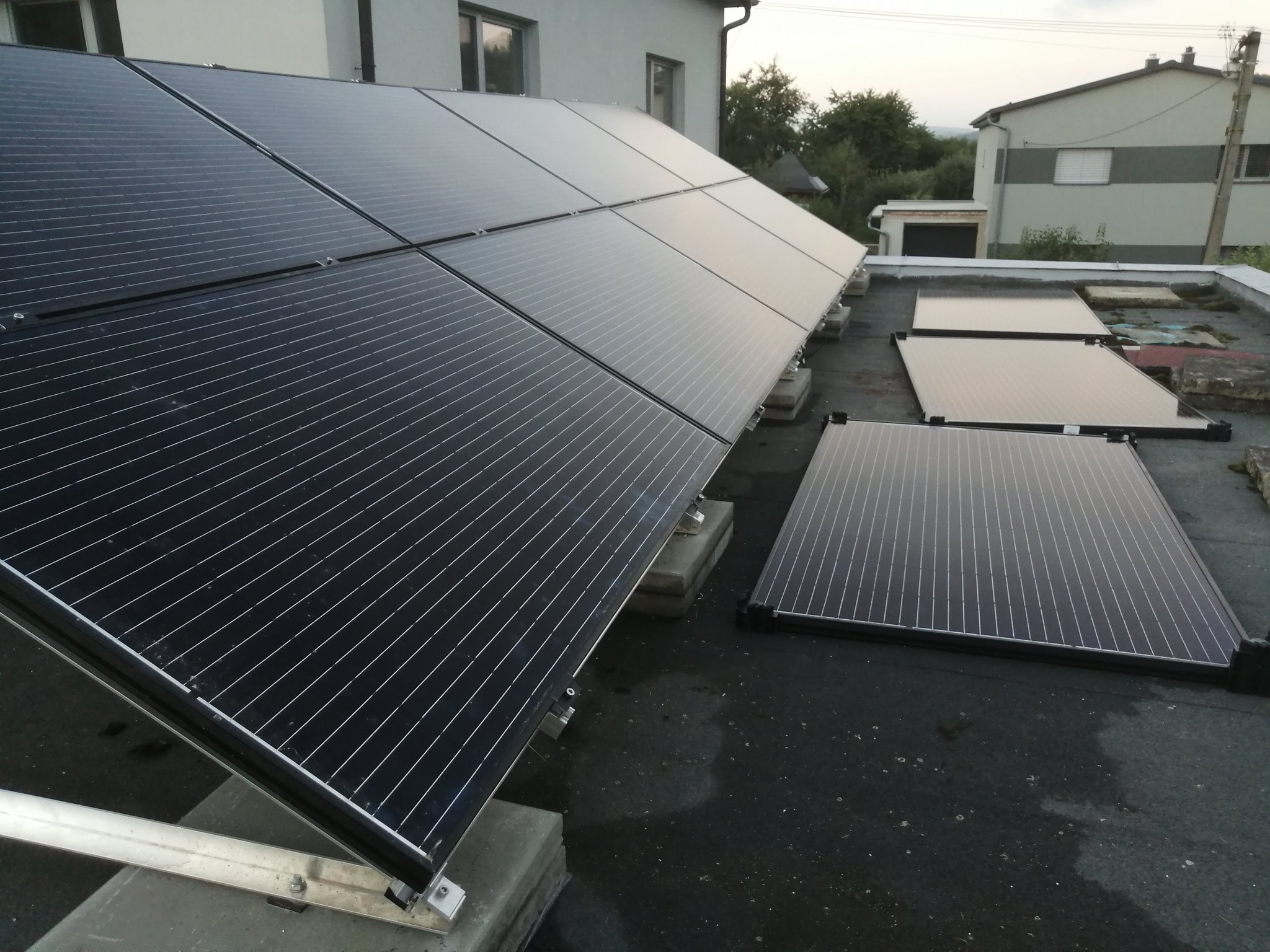 32540Wp, 90ks vakuové trubice jihozápad, (Lifepo4 17S 520Ah, trakční gel 800Ah), Axpert Max 7200VA, Easun Isolar 5500VA,Multiplus 2 48/5000,MPPT 150/85, 150/100
