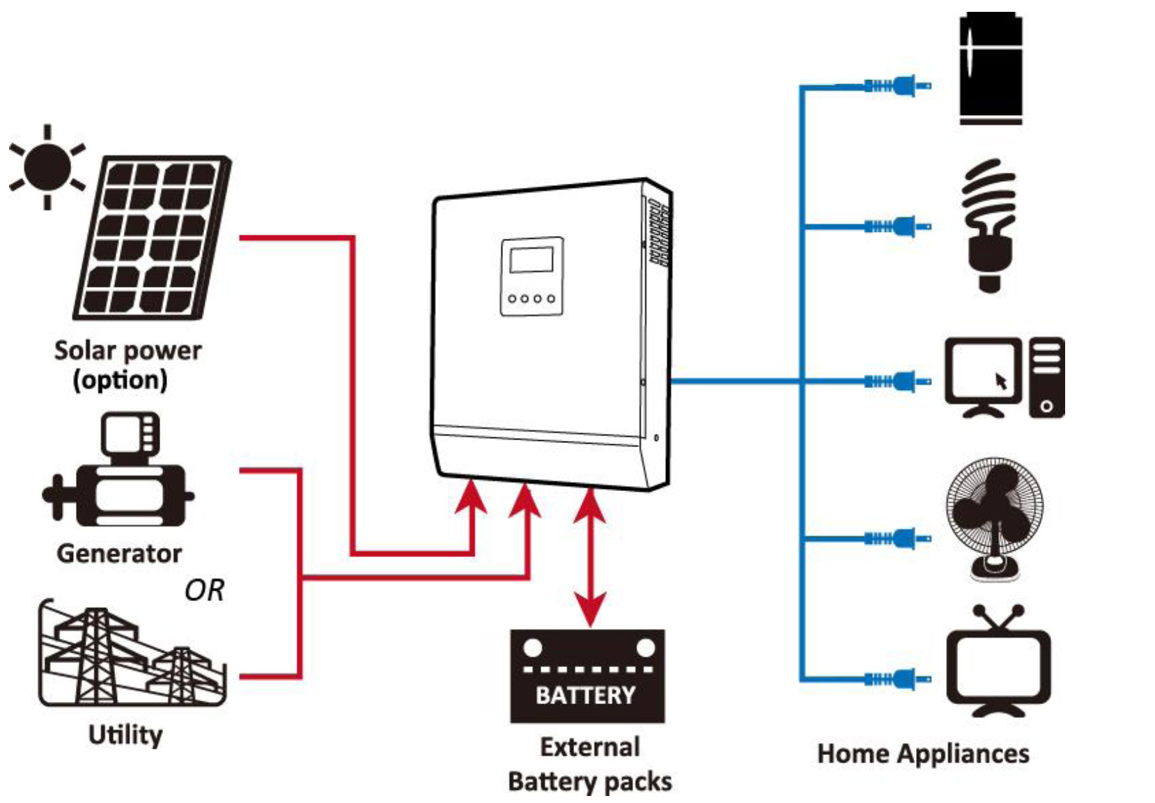 Tady máš to tvoje "Něco" a jak se zapojuje. Je v něm navíc mppt regulátor a nabíječka baterie. Je to z manuálu k Axpert: