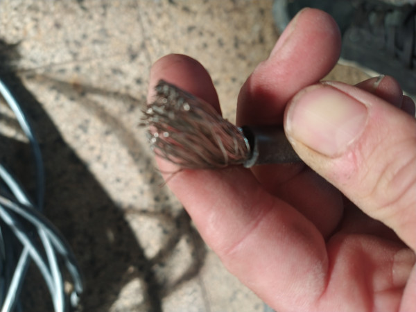 Prodám kabely. Pokud jsem to dobře počítal a měřil, tak průřez by měl být 50mm2, průměr všech lanek 7mm. Napočítal jsem tam cca 177fousů o průměru 0,4mm.