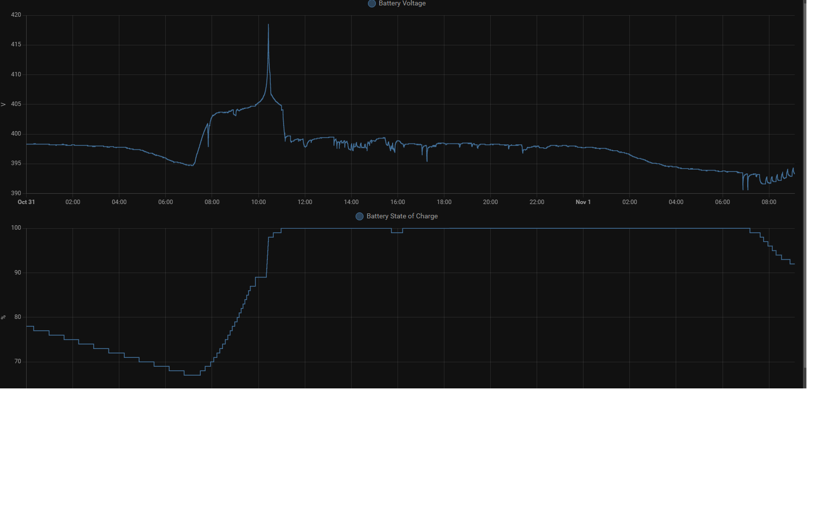 Zjistil jsem, že včera skokově narostlo napětí na baterii na 418,5V. Od té doby se chová jak popisuji v předešlém příspěvku.