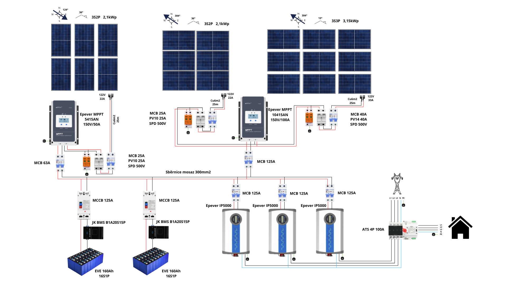 3 měniče...ok dám jednu fázi a zjistím jestli epevery umí paralel nebo vyberu něco jiného. Ikdyž přetěžování by nehrozilo, jeden má 5kW a umí 1,5x chvilkové přetížení, ale to flákání žere 40W a to už se za rok nasčítá