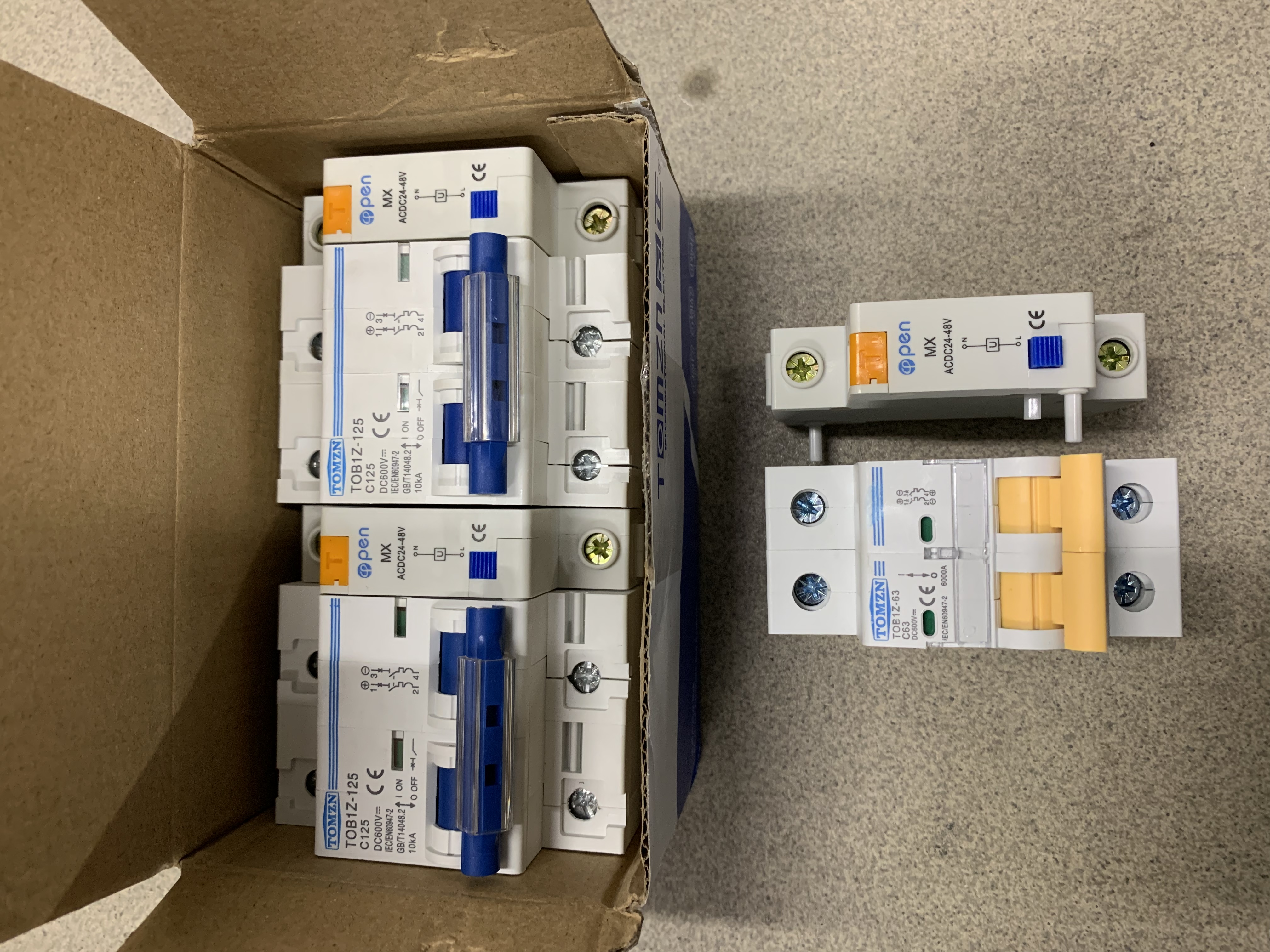 Nabízím k prodeji nové jističe značky TOMZN včetně vyrážecích cívek 24-48V. K dispozici jsou 2 kusy jističů DC 125A, 1 kus jističe 63A a náhradní vyrážecí cívka. Vše prodávám za nákupní cenu 1500 Kč, možnost koupě jednotlivě. Ideální nabídka pro spolehlivé a bezpečné elektrické instalace.