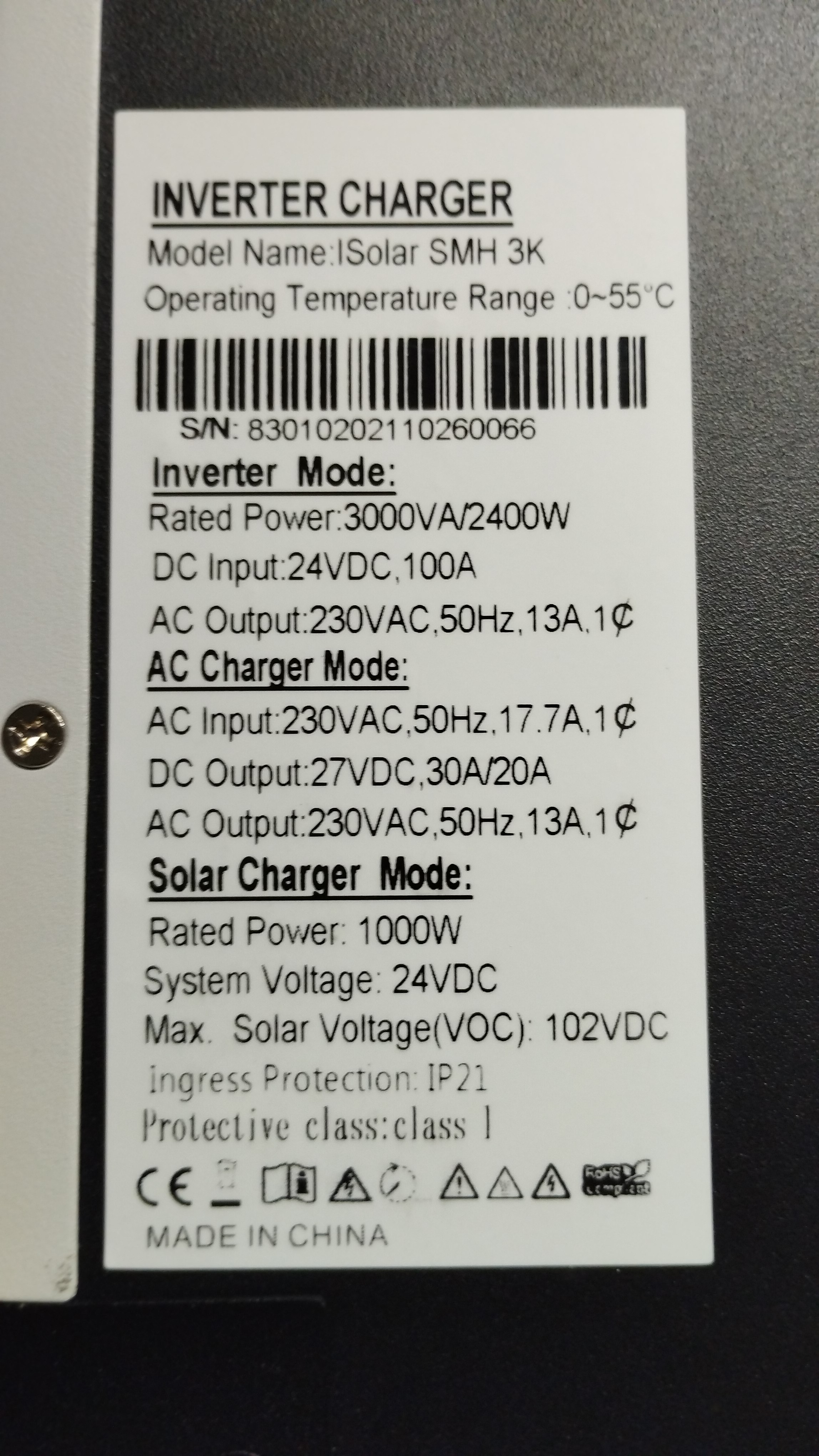 | 2x MUST PV18-3024 VHM, 3kW/24V | 16kWh